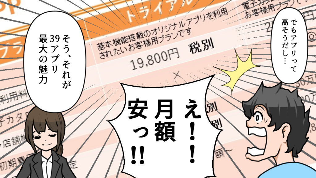 アプリ導入をお考えの企業・店舗さんは、必ず見積もり提案を複数社から取り寄せましょう!その中のひとつに、ぜひ私どもの「39APP」をお加えください!
